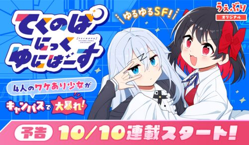 【予告】10/10(金)より SFコメディ新連載『てくのぱにっくゆにばーす』スタート! サンデーうぇぶり新人賞出身、『サヨナラ魔法使い』で連載デビューを飾った新鋭・伏見ダイキ氏による新連載『てくのぱにっくゆにばーす』(略称「てくのぱ」)が、10/10(金)よ…